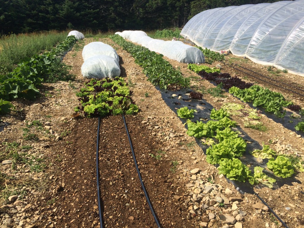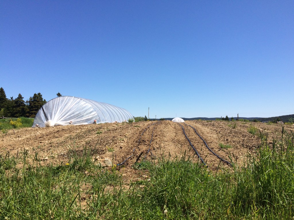 This was my plot at O’Brien’s Farm when I first saw it in May 2022This is the rock removal process! This pile of rocks has gotten much bigger since then!This is the composted chicken manure being spread at the end of May. Tools required: shovel, wheelbarrow and rake!Woman with lots of determination and BCS tractor to do a shallow incorporation of the compost in the ground!This is the field and greenhouse in mid to late June. Seeds sowed in the field and tomatoes, basil and zucchinis transplanted in the greenhouse.This is the 20th of July; potatoes, squashes, lettuce, beets, etc. growing happily.Lots of nice veggies!