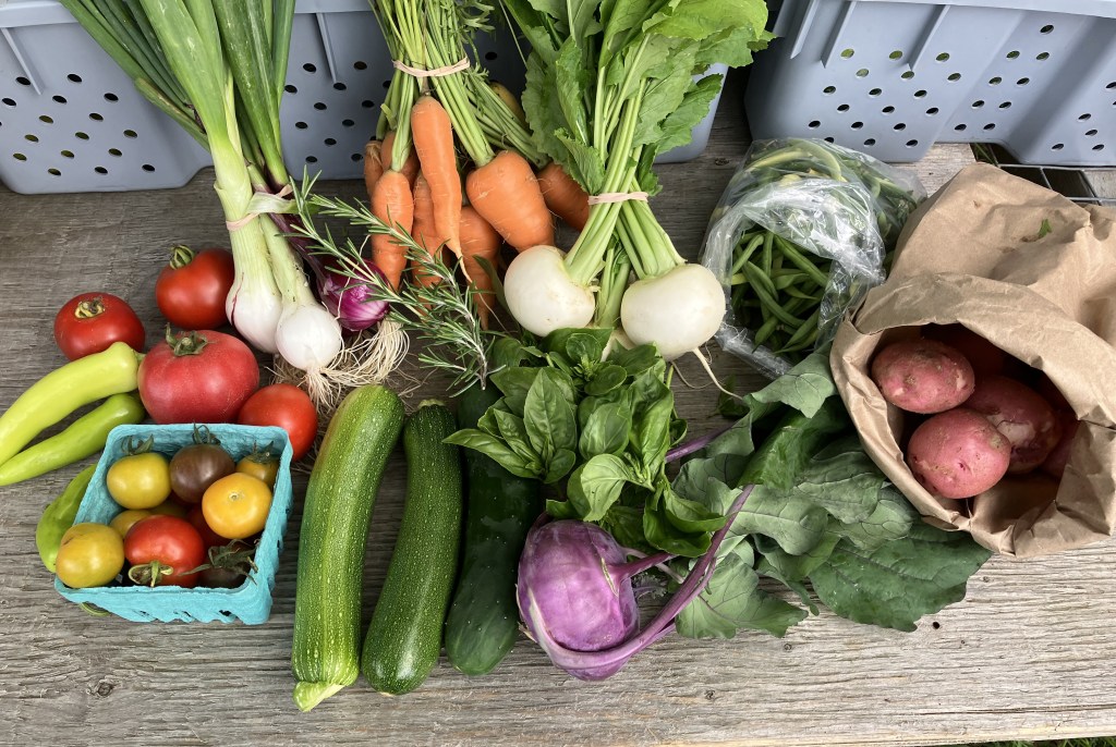 Members will receive bags of vegetables from late June or early July to the first week in October. You will receive one bag of veggies per week (or every 2 weeks for part-time members) for 15 weeks total. Each bag contains veggies of an approximate value of $35 to $45, for an average value of $41 or more per week. You can register for membership on the Become a member page.